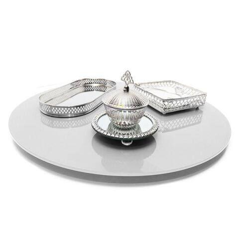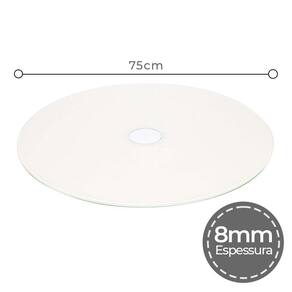 Prato Giratório 75Cm De Vidro Temperado 8Mm Cor Branco- vidro temperado 8mm 5 à 7x mais resistente do que o vidro comum;- muito mais resistente à variações de temperatura de até 250ºc panelas etc... - base giratório reforçada e blindada oferece giro livre e macio sem trancos;- prato inferior garante a maior estabilidade 'não tomba';- qualidade high-premium "foi feito para durar";- suporta em sua base até 100kg;- corte à laser "sem rebarbas", acabamento perfeito c/borda infinita;- vidro temperado é considerado como "vidro de segurança" não estilhaça ;- sucesso absoluto, quem utiliza aprova e recomendaAtenção Nosso maior compromisso é a qualidade e segurança, fique atento à economizar comprando prato giratório pelo menor preço.Com segurança não se brinca, existem pratos no mercado que estão descolando à mesa, isso pode transformar um momento familiar no maior pesadelo.Muitas vezes o barato sai caro. Exija qualidade para sua total segurança.Dica: decorativo e funcional, pode ser utilizado também como centro de mesa.Dica extra: pode ser utilizado para exposição de produtos em lojas, é ótimo para confeitar bolos.Cuidados:Utilize detergente neutro e enxágue com água em abundância.Para secar utilize pano seco e macio.Utilize esponja macia e não abrasiva.Características:Altura: 2cmDiâmetro: 75cmEspessura do vidro: 8mmCor: brancoMaterial: vidro e rolamento de alumínio Conteúdo:1 x prato giratório branco 75cm