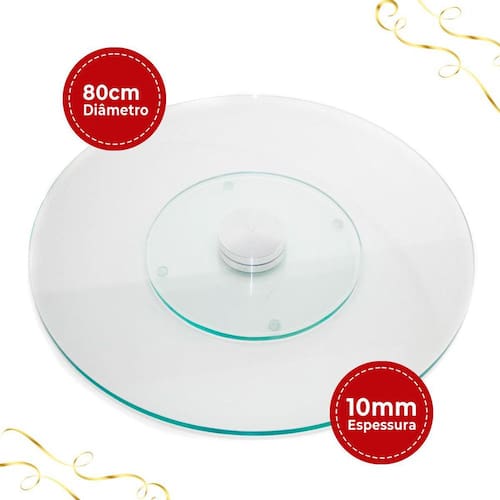 Vidro temperado é 5 à 7x mais resistentes do que o vidro comum Espessura do vidro 10mm, oferece resistência e maior segurança; O único que suporta em sua base até 100 kg aprox; Qualidade high premium, foi feito para durar; Possui base reforçada que oferece muito mais estabilidade, giro livre e macio; Indispensável para o dia-a-dia e ideal para ocasiões e datas especiais; Sucesso em milhares de lares, quem utiliza aprova e recomenda; Desenvolvido por especialistas é o melhor prato giratório do mercado.