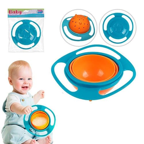 Atenção: imagens meramente ilustrativas.Contem:01 un - prato giratório 360 - azul.Um super pratinho para ajudar na alimentação do seu bebêDesenvolvido para as crianças não deixar derramar a comida, biscoito e afins.O prato gira e não deixa cair, a criança pode coloca-lo de várias maneiras mas a parte de dentro sempre fica no meio e não derramaEle gira e não deixa a comida cairEstimula: coordenação motora e tato do bebê.Garanta já o seuCaracterísticas do produto:Composição: plástico.Super leve e fácil de utilizar.Medidas do prato:8 cm de altura.18 cm de largura.