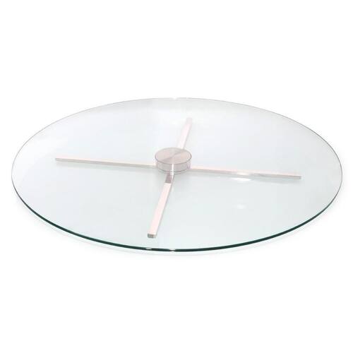 Características: - Altura: 5cm - Diâmetro: 55cm - Espessura do vidro: 10mm - Base giratória inox: 5cm - Cor: incolor - Material: vidro temperado - Base giratória inox304