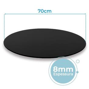 Altura: 5cm Diâmetro: 70cm Espessura do vidro: 8mm Cor: preto Material: vidro temperado
