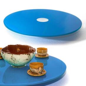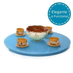 O prato giratório é moderno, inovador e adiciona muito conforto e praticidade à sua mesa, você não vai precisar levantar da cadeira ou estica-se sob à mesa, basta girar o prato e pronto, ele deixa os alimentos sempre à mão. Acrescenta a mesa um toque de sofisticação e praticidade no café da manhã, almoço e jantar. Com recipientes quentes, evita a queima de toalhas e mesas. Pode ser utilizado também das seguintes formas: expositor para lojas: perfumes, cristais, e ótimo para confeitar bolos.