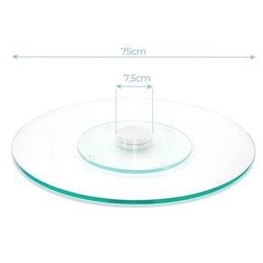 Características: Altura: 5cm Diâmetro: 75cm Base giratória: 7,5cm Espessura do vidro: 8mm Cor: incolor Material: vidro temperado Base giratória inox 304