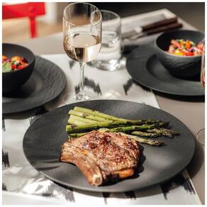O prato universal redondo com aparência de ardósia da linha Manufacture é o complemento perfeito para qualquer refeição, do café da manhã ao jantar. Com um tamanho ideal para servir uma variedade de pratos e acompanhamentos, sua borda larga evita respingos, tornando-o excelente para mesas de banquete.