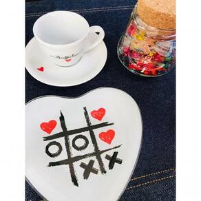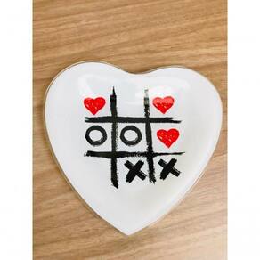 Cor: Branco | Louças e Artigos para Servir: Prato | Produto: Prato coracao jogo da velha P 14X13 cm