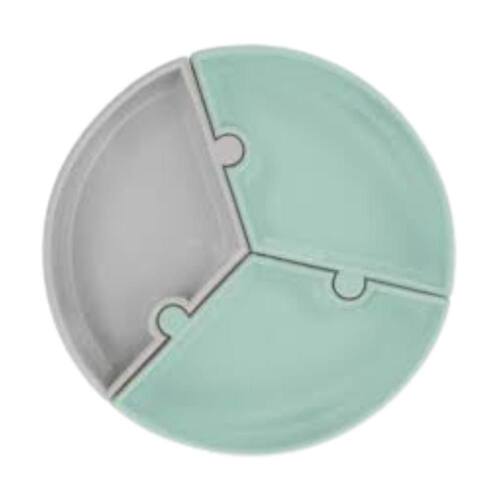 Prato Infantil de Silicone Encaixe Puzzle River Green e Cinzento - Minikoioi