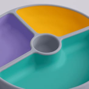 Características:4 divisórias coloridas: Amarelo, verde, roxo e cinza – ajudam a separar os alimentos, incentivando a curiosidade e o paladar da criança.