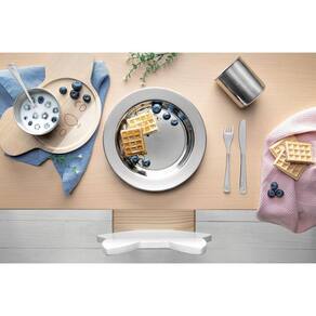 Prato com formato ergonômico, especialmente criado para incentivar e auxiliar no desenvolvimento das crianças.