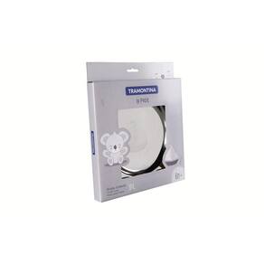 Prato com formato ergonômico e com desenho estampado no centro da peça, especialmente criado para incentivar e auxiliar no desenvolvimento das crianças.