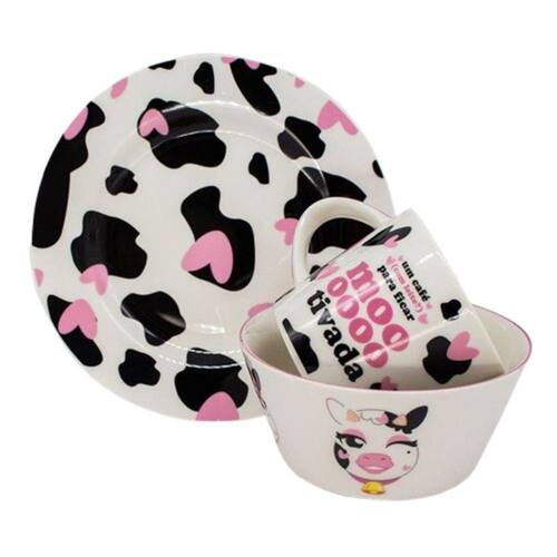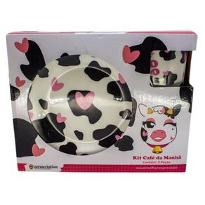 Prato Kit Breakfast Vaquinha 10025663 300ml Zonacriativa ATENÇÃO: As cores dos produtos podem sofrer variações em função das características do monitor e do ambiente durante sua visualização. Depois de um dia cheio de aventuras, você não consegue se alimentar direito A gente te ajuda Com um bowl, caneca e prato, esse é o kit perfeito para te acompanhar durante as suas refeições Não importa se é no café da manhã, almoço ou janta, adicione diversão e criatividade em todas as suas garfadas O produto é , feito em cerâmica, possui detalhes incríveis que vão fazer você se apaixonar Se você quer uma ajudinha para completar suas refeições com um tempero de diversão e criatividade, a gente te ajuda Com uma caneca de 300ml para o seu café ou suco, um bowl de 300ml para seus cereais ou frutinhas e um prato para as suas refeições Especificações Caneca: 300ml Bowl :400ml Prato:19cm Material;cerâmica Cuidados Não utilizar produtos abrasivos. Limpar com sabão neutro. OBSERVAÇÕES: Os objetos que ambientam as imagens não acompanham o produto. Produtos e cores podem variar daqueles representados na embalagem. Marca: Não Informado