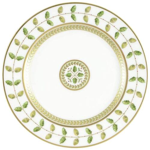 A linha Constance é um verdadeiro ícone de requinte e sofisticação, inspirada no elegante estilo Império. A delicadeza da porcelana de Limoges é realçada pela encantadora pintura em aquarela de bolotas, carvalho e folhas de louro, que simbolizam força, longevidade e paz. O acabamento em ouro, combinado com as folhas de carvalho, complementa uma paleta de verdes, resultando em uma estética clássica e atemporal.