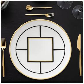 Este prato inferior é multifuncional, podendo ser utilizado como prato de bolo, e apresenta um padrão brilhante que se manterá bonito por muito tempo, graças à tecnologia Inglaze Gold. Feito de porcelana Premium Bone, é resistente e pode ser lavado na máquina de lavar louça e aquecido no micro-ondas.
