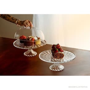 Equipado com um pé delicadamente trabalhado, este prato para bolo não apenas eleva suas sobremesas, mas também adiciona uma elegância adicional à apresentação. Além disso, a tampa garante a proteção e a frescura das suas sobremesas até o momento de servir.