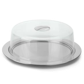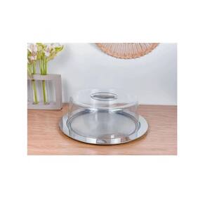 Composição do produto: 1 Prato em inox 33,2x1,2 cm 1 Cúpula em ps incolor 27,5x10,5 cm com pomel em inox