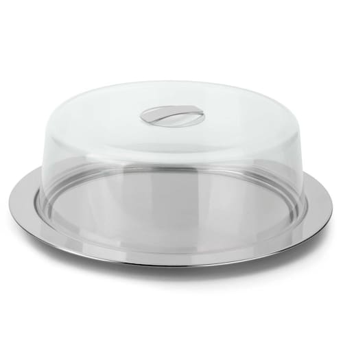 Requinte e praticidade em sua mesa com o Prato para Bolo Vision! Produzido em aço inox e ps, protege o alimento enquanto embeleza seu lar. De linhas elegantes e cuidadosamente pensadas, preserva o alimento por mais tempo.