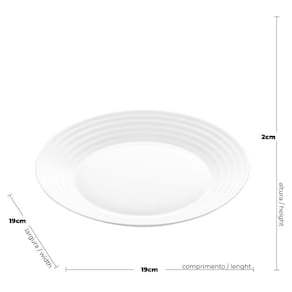 Prato para sobremesa de vidro harena branco 19cm luminarc Prato para sobremesa de vidro harena branco, é mais forte que o vidro normal. Sua superfície lisa e brilhante é um material 100% higiênico e antibacteriano não poroso, à prova de manchas. Prato fundo da coleção harena, em vidro temperado brano. O vidro passa por um tratamento específico de endurecimento para garantir maior durabilidade térmica e mecânica durante o uso. É um material não poroso, portanto não retém microrganismos, é 100% higiênico. Beneficios deste produto. - design elegante - super brilho - alta qualidade - leve e resistente a rupturas - prato vidro temperado até 7 vezes mais resistente do que vidros comuns - não risca facilmente - vai na lava-louças - vai no micro-ondas Medidas aprox: 1 x 19cm Cor: branco Marca: luminarc : 3 meses contra defeitos de fabricação. Conteúdo da embalagem: 01 prato Imagens meramente ilustrativas. As cores podem variar conforme monitor/smartphone utilizados para visualização do anúncio.