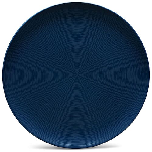 A coleção Colorscapes oferece uma variedade de componentes, incluindo pratos de jantar, pratos de salada, tigelas de sopa e cereal, canecas e acessórios abrangentes, permitindo que você misture e combine para criar uma coleção de louças personalizada e única. O padrão NoN Swirl é caracterizado por círculos concêntricos em espiral em um elegante tom azul marinho, proporcionando um toque contemporâneo e artístico à sua apresentação.