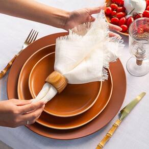 Prato Raso Copa E Cia Vivant Em Cerâmica Terracota Prato Raso Copa e Cia Vivant em Cerâmica Terracota - Características Gerais do Produto: - Composição: 100% Cerâmica. - Detalhes: Peça Vendida de Forma Individual.; Cerâmica com Efeito Mate (Fosco).; Design Exclusivo Copa&Cia.; As cores podem sofrer pequenas alterações de cor, variando de monitor para monitor.; Os objetos que ambientam as fotos não acompanham o produto.; As fotos produzidas são apenas como sugestão de uso com as demais peças da coleção.; Produzido na Tunísia - Cuidados: Lavar com Detergente Neutro e Esponja Macia.; Não Deixar de Molho.; Podem ser Colocados em Lava-Louças e Micro-Ondas.; Não utilizar solventes, abrasivos ou alvejantes. - Dimensões (cm): Prato Raso: 27cm Acompanha o produto: - 1 Peça de Prato Raso Garantia: - 7 dias/30 dias contra defeito de fabricação