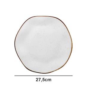 Destaques: - Diâmetro: 27,5cm - Modelo: Ryo Maresia - Material: Porcelana de alta durabilidade - Acabamento: Esmaltado com detalhes pontilhados - Formato orgânico com bordas levemente irregulares