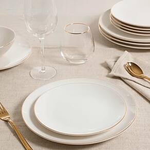 Prato Raso em Porcelana Branco Borda Dourada Royal 27cm - Hauskraft