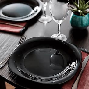 Prato Raso de Vidro Opalino 27cm Carine Black Lyor Quadrado Brilhante para Servir Mesa Posta