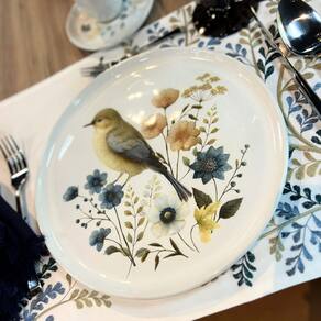 Elegância Duradoura: Inspirado nos jardins floridos e no canto suave dos pássaros, traz leveza e charme à composição da mesa.