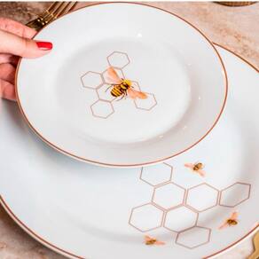 Prato Raso Abelha em Porcelana Brown Rim 27cm - Elegância e Estilo para a Sua Mesa O Prato Raso Abelha em porcelana combina charme, sofisticação e um toque natural para valorizar a apresentação das refeições. Com design exclusivo, apresenta borda em tom marrom brown rim e delicada decoração de abelhas, trazendo personalidade e elegância para compor a mesa. Fabricado em porcelana de alta qualidade, oferece resistência, durabilidade e acabamento refinado, sendo ideal tanto para o uso diário quanto para ocasiões especiais. Destaques do produto: Design elegante: Estampa delicada de abelhas e borda marrom que acrescenta um toque rústico e sofisticado. Material resistente: Produzido em porcelana de alta qualidade, garantindo durabilidade. Tamanho ideal: 27cm de diâmetro, perfeito para servir refeições principais com requinte. Versatilidade: Indicado para o uso cotidiano ou para compor mesas em eventos especiais. Fácil manutenção: Pode ser lavado manualmente ou em lava-louças. Especificações: Linha: Abelha Brown Rim Material: Porcelana Diâmetro: 27cm Cor: Branco com borda marrom e estampa de abelha Traga um toque de charme natural e sofisticação para a sua mesa com o Prato Raso Fullfit Abelha em Porcelana. Marca: Não Informado