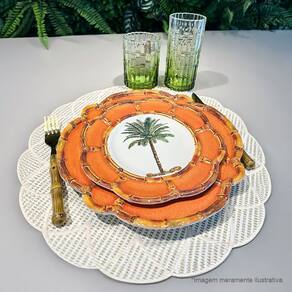Prato Raso Melamina Borda Bambu Laranja Desenho 28cm 50099 - EntreCasa - Dorémi Casa e Decor