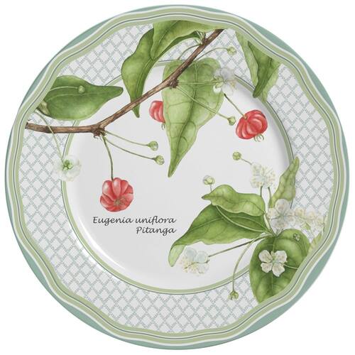 Composição 6 pratos rasos pitanga Dimensão Quantidade 6unidades Peso g 770 Diâmetro cm 28.5 Altura cm 2.2 Peças elaboradas em cerâmica feldspática branca de alta resistência, com processo de decoração digital, sobre a base branca. Produto não refratário. Pode ser levada ao micro-ondas e lava-louças. Não libera substancias tóxicas. Tipo de embalagem: caixa parda. : 90 dias por defeito de fabricação. Podem ocorrer pequenas variações de tonalidades de cor, brilho, textura e tamanho das peças, em função de fatores relacionados ao processo de transformação de matérias primas naturais e variações existentes nas etapas de conformação, decoração e queima. Marca: Não Informado