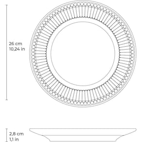 Marca Porto Brasil Cerâmica Coleção Ravenna Linha Roma Branco Material Cerâmica Feldspática Cor Predominante da Base Branco Composição 1 Prato Raso Dimensões do Produto Ø 26cm A = 2,8cm