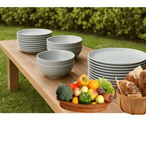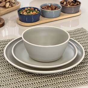 Prato Raso, Sobremesa e Bowl Melamina Cinza 18un Class Wolff