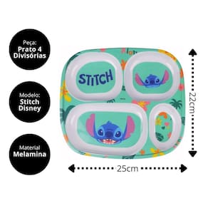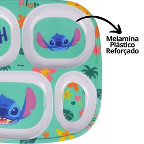 Prato Refeição Infantil Divisórias Melamina Stitch Disney