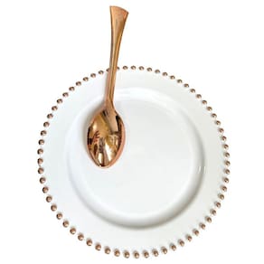 18 unid. Prato de natal réveillon sobremesa ou petiscos + 18 unid. Colher rose Branco com detalhes nas bordas rose Pratos em plástico grosso, não é descartável .