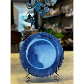 PRATO SOBREMESA COUP LAPIS LAZULI 1ª CLASSIFIC. ALLEANZA 21 cm de diâmetro Revendedor autorizado. Produto direto da fábrica Alleanza Cerâmica. Cerâmica Feldspática branca de alta resistência, com processo de decoração digital, sobre a base branca. Produto Não Refratário e não libera substancias tóxicas. Pode ser levada ao micro-ondas e lava-louças. Podem ocorrer pequenas variações de tonalidades de cor, brilho, textura e tamanho das peças, em função de fatores relacionados ao processo de transformação de matérias primas naturais e variações existentes nas etapas de conformação, decoração e queima.