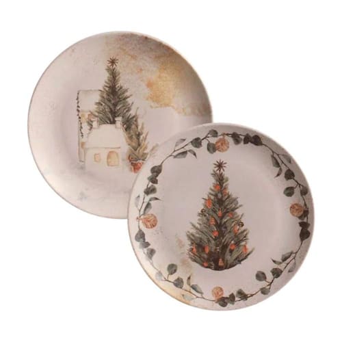 Elegância Duradoura: Cada prato traz um design exclusivo com uma estampa temática natalina, apresentando tons vibrantes e elegantes. As ilustrações podem variar, conferindo singularidade e charme a cada peça.