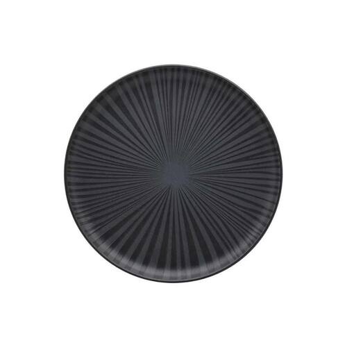 Elegância Duradoura: Inspirado na beleza natural da pedra ônix, este prato possui acabamento acetinado em preto, com linhas em alto relevo que se estendem do centro às bordas, evocando as ramificações da pedra conhecida por afastar energias negativas.