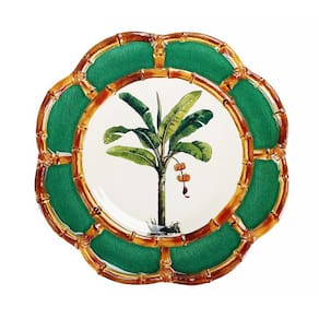 1 Prato Sobremesa Melamina Borda Bambu Verde Desenho 22cm 50098 - EntreCasa