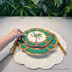 Esse Prato em Melamina com Borda de Desenho de Bambu além de ser lindo é extremamente resistente.
