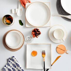 Os pratos rasos brancos fio de ouro, vão trazer à sua mesa posta mais charme e sofisticação nos momentos de suas refeições. É um item indispensável para quem preza por uma boa e clássica mesa posta.