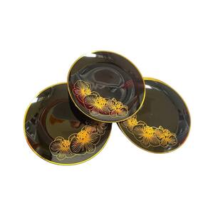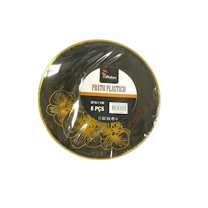 Os pratos são feitos em plástico grosso de alta qualidade, o que garante resistência e durabilidade. Além disso, eles possuem um lindo design com detalhes dourados que dão um toque de elegância à sua mesa. O material utilizado é o acrílico, que proporciona um acabamento brilhante e sofisticado.