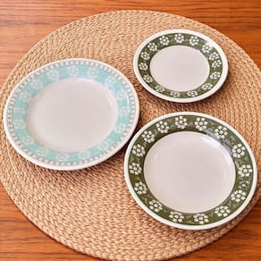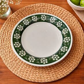 Delicadeza para encantar no dia a dia. A linha Donna Bosque tem a natureza como estrela principal da decoração, com a estampa de pequenas flores e ramos na aba de cada prato. A proposta é monocromática variando entre tonalidades da cor verde