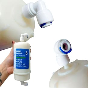 Refil compatível com purificadores de água com mangueira de 1/4, proporciona água alcalina, super filtração com retenção de partículas classe A e redução de cloro.Tipo