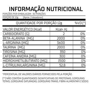 Beta Alanina 2.000mg : Ajuda a retardar a fadiga muscular, permitindo que você treine por mais tempo e com mais intensidade. Arginina 3.600mg : Com uma dose altíssima, a Arginina promove a vasodilatação, aumentando o fluxo sanguíneo para os músculos e melhorando a entrega de nutrientes essenciais durante o treino. Taurina 2.000mg : Essencial para a saúde cardiovascular e função muscular, a Taurina também pode aumentar a resistência e reduzir a fadiga durante o exercício. Tirosina 350mg : Ajuda a melhorar o foco, concentração e alerta mental, mantendo você motivado e engajado em seu treino. Cafeína Anidra 300mg : A forma purificada e altamente concentrada de cafeína aumenta a energia, o foco e o desempenho físico, mantendo você alerta e motivado durante todo o treino. HMB 1. Citrulina 52,8mg : Contribui para a produção de óxido nítrico, promovendo uma melhor vasodilatação e aumentando o fluxo sanguíneo para os músculos. O Dyna'Kout entrega o que há de melhor em um pré-treino, com doses altas para uma máxima eficácia, em comparação com os pré-treinos nacionais. Prepare-se para uma performance excepcional que supera todas as expectativas. Experimente o Dyna'Kout e eleve seu treino a um novo patamar.
