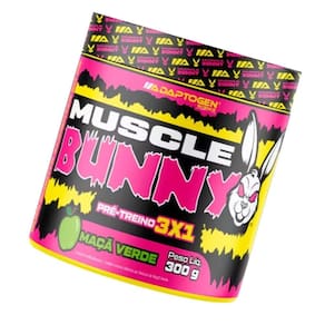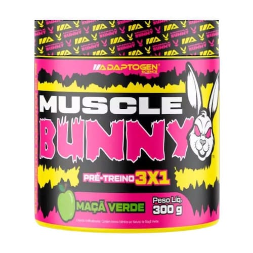 Pré Treino Muscle Bunny C300g - Adaptogen Sabor Maçã Verde O Pré Treino Muscle Bunny é um suplemento nutricional desenvolvido para fornecer energia, foco e resistência durante os treinos intensos. Com uma fórmula que inclui ingredientes como cafeína, beta-alanina e taurina, ele potencializa o desempenho físico, melhorando a força e a recuperação. Seu sabor refrescante de maçã verde garante uma experiência agradável antes do exercício. Características: Peso líquido: 300g. Sabor maçã verde. Sem glúten e lactose. Embalagem prática em pote. Tamanho da porção: 10g. Ingredientes principais: maltodextrina, beta alanina, taurina, arginina, cafeína, extrato de casca de laranja amarga, hibisco e chá verde. Benefícios: Aumenta os níveis de energia e disposição para treinos intensos. Melhora o foco e a concentração durante a atividade física. Auxilia na resistência e na performance durante os exercícios. Contribui para a e o aumento da força muscular. Fácil diluição e consumo com água gelada. Compre Agora Pré Treino Muscle Bunny C300g - Adaptogen Sabor Maçã Verde Com o Pré Treino Muscle Bunny, você tem uma formulação poderosa que ajuda a potencializar seus resultados. Prepare-se para treinos mais energéticos e intensos, com o sabor refrescante da maçã verde Marca: Não Informado Ean: 7893095686777