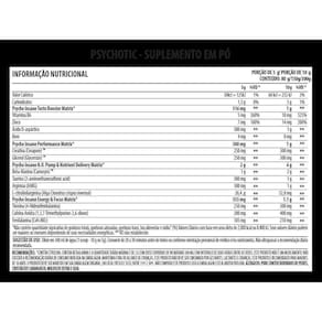 Pré-treino psychotic orange 150g - psycholabz DescriçãoPré treino psychotic 300gs psycholabz é uma formulação ultra concentrada que fornece extrema energia, aumentando a resistência muscular, energia monstra para treinar pesado, ajuda no desempenho física e na força corporal, diminui a fadiga e o cansaço. A linha de produtos da psycholabz tm foi desenvolvida para atletas que treinam no nível hard. Se você é iniciante não use estes produtos, pois a diferença é brutal. Modo de usoDiluir 300ml de água 1 scoop - 10g = duas doses medida ou 1/2 scoop = uma dose medida . Consumir de 20 a 30 minutos antes do treino ou conforme orientação de médico e/ou nutricionista. Não ultrapassar a recomendação diária recomendada. Dispensado de registro no ministério da saúde conforme rdc 240 de 2018 - anvisa.
