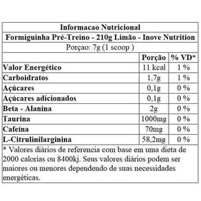 Pré Treino Sabor Limão Formiguinha 210g Inove Nutrition O Pré-Treino Sabor Limão Formiguinha 210g Inove é um suplemento pensado para ser utilizado antes das atividades físicas. Com um sabor marcante de limão, ele se apresenta em pó, facilitando a diluição em líquidos, tornando-o prático para o dia a dia. A embalagem de 210g oferece quantidade suficiente para diversas porções, atendendo às necessidades de quem busca complementar a rotina de treinos.
