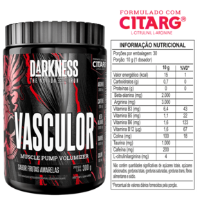 Vasculor é um pré-treino desenvolvido com ativos que maximizam o fluxo sanguíneo e o transporte de nutrientes essenciais para o tecido muscular. Sua fórmula foi criada para aumentar a força e o desempenho em treinos intensos.Contém arginina, citrulina e colina, responsáveis pelo aumento da vascularização muscular, além de cafeína, taurina e beta-alanina, que promovem a melhora do desempenho pelo aumento da energia muscular e redução da fadiga.