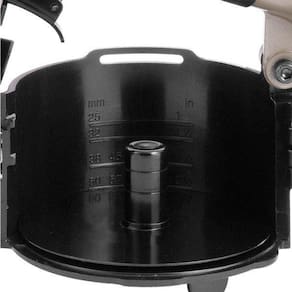Possui corpo em alumínio e empunhadura emborrachada que proporciona resistência e conforto. Conta com sistema de segurança que só permite o acionamento do pregador quando pressionado à peça, evitando disparos involuntários.