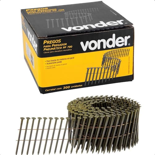 O carretel com 300 unidades oferece excelente rendimento para profissionais que desejam aumentar a produtividade e automatizar seus sistemas de fixação, otimizando o tempo de trabalho sem perder a qualidade nos detalhes. E mesmo sendo projetado para o modelo PP 700 da Vonder, pode ser utilizado em outros pregadores compatíveis com as mesmas especificações, desde que se respeite o diâmetro e o comprimento dos pregos.