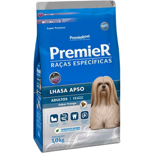 Ração Premier Cães Lhasa Apso Adultos - 1kg - Saúde intestinal: através da combinação de ingredientes de alta digestibilidade, fibras especiais e prebióticos; - Saúde oral: contém hexametafosfato de sódio, importante ingrediente para a prevenção da formação do cálculo dental; - Nutrição específica: proteção da visão por conter antioxidantes e vitamina A, Pelagem bonita e pele saudável através de ácidos graxos essenciais ômegas 3 e 6, biotina e zinco.